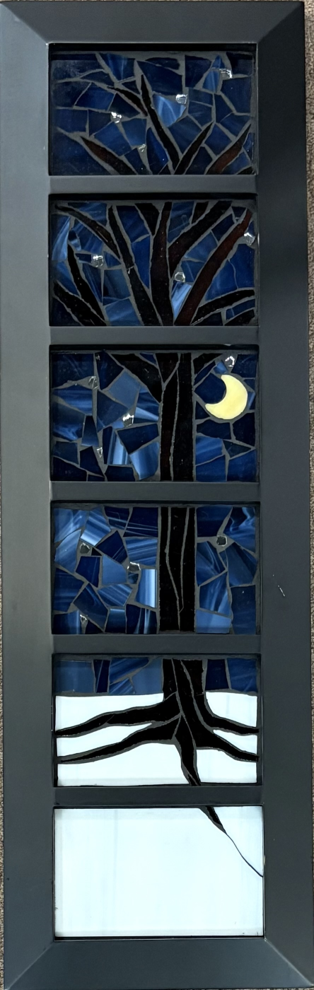 Wall Art Print 8.25x26H BlkBluWh Glass & Wood Tree