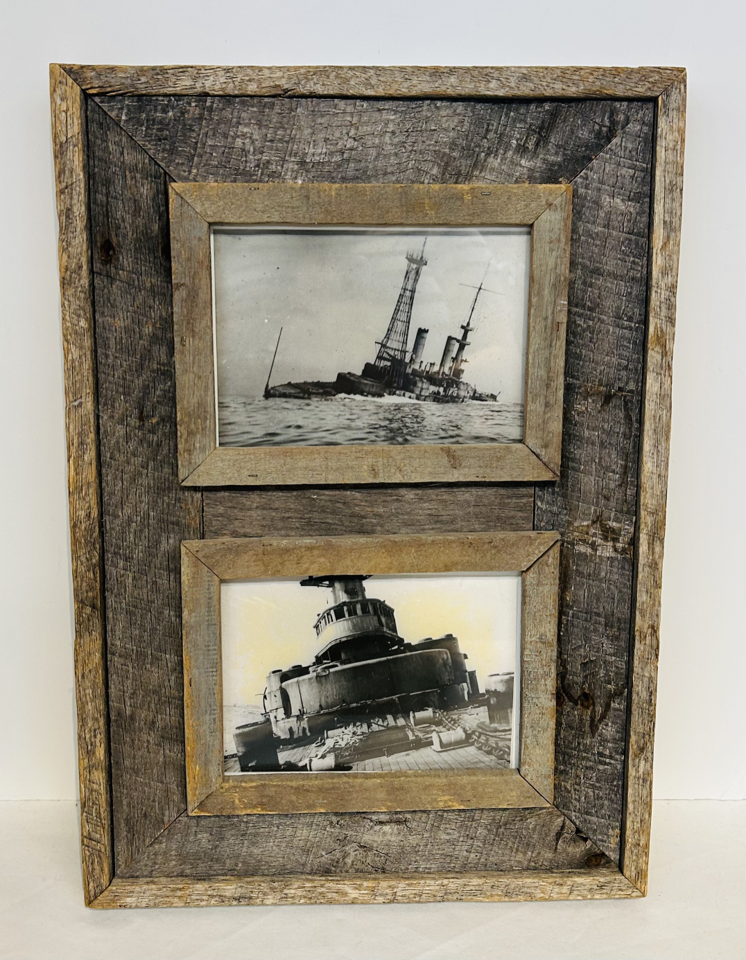 Wall Art Print 12x18H GryBrnBlk Wood Ships