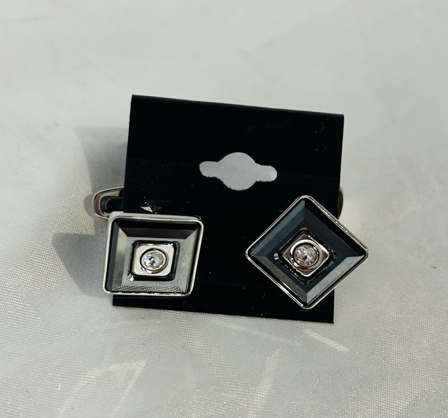Boutique Accessory Swarovski 1"L SlvGry Metal Cufflinks