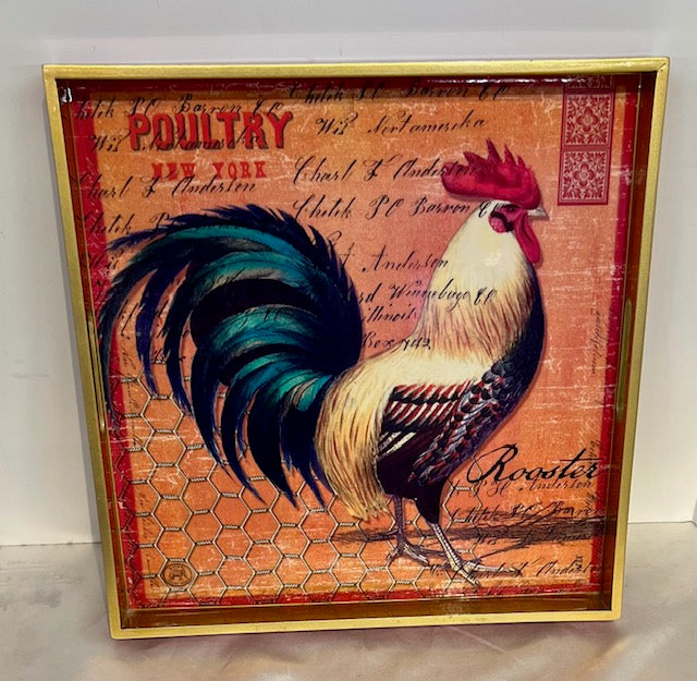 Tray MichelDesignWrks Rooster 12.5x12.5 ROgGrn