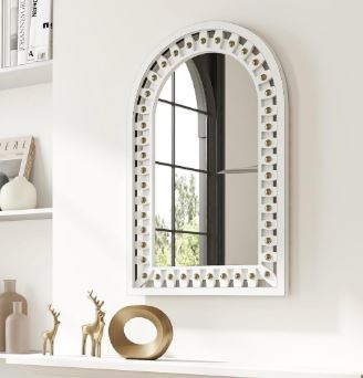 Wall Art Mirror Varsoul 24x36H WhGld Wood Arched
