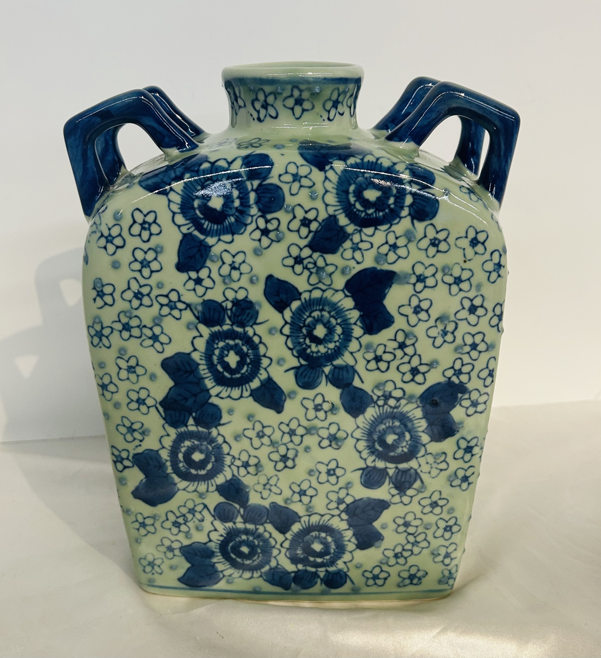 Decor Vase 7x9.5H GrnBlu Ceramic Asian