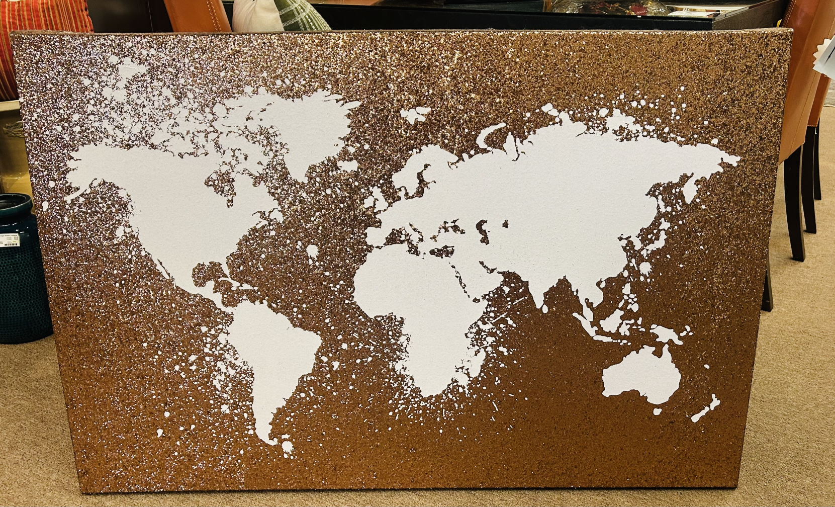 Wall Art Wall Decor 45x30.5H PnkWht Canvas World Map