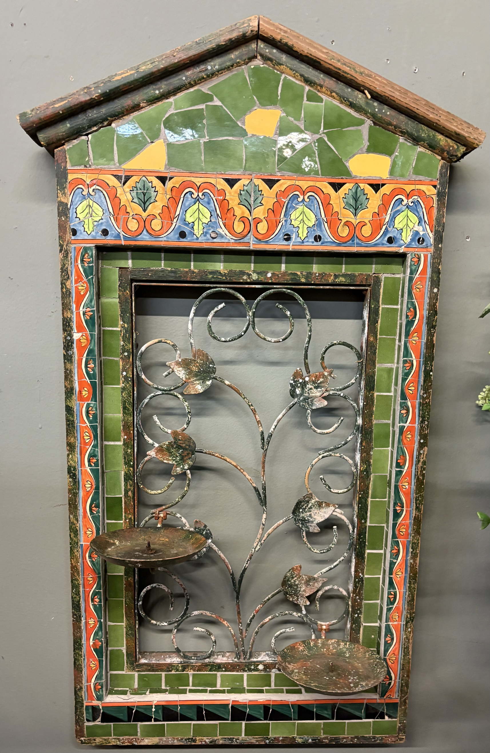 Wall Art Wall Decor 16.5x29H GrnOYBluBrn Wood & Metal Rustic