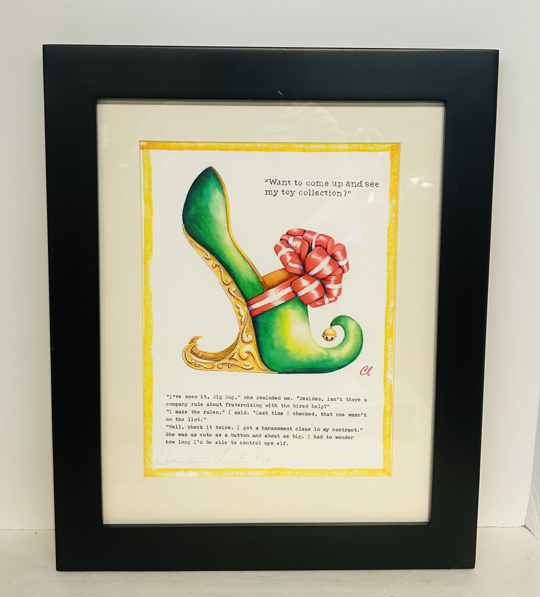 Decor XMas Seasonal 13.5x16.5H GrnYeWhBk Wood Shoe