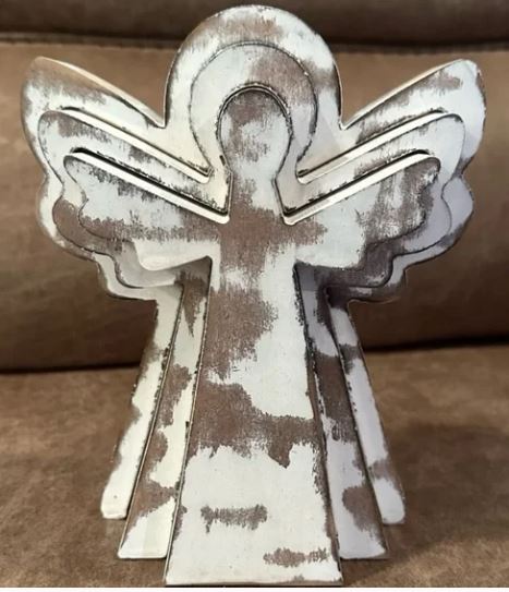 Decor XMas Seasonal 4.5x3x8H WhTn Wood Nesting