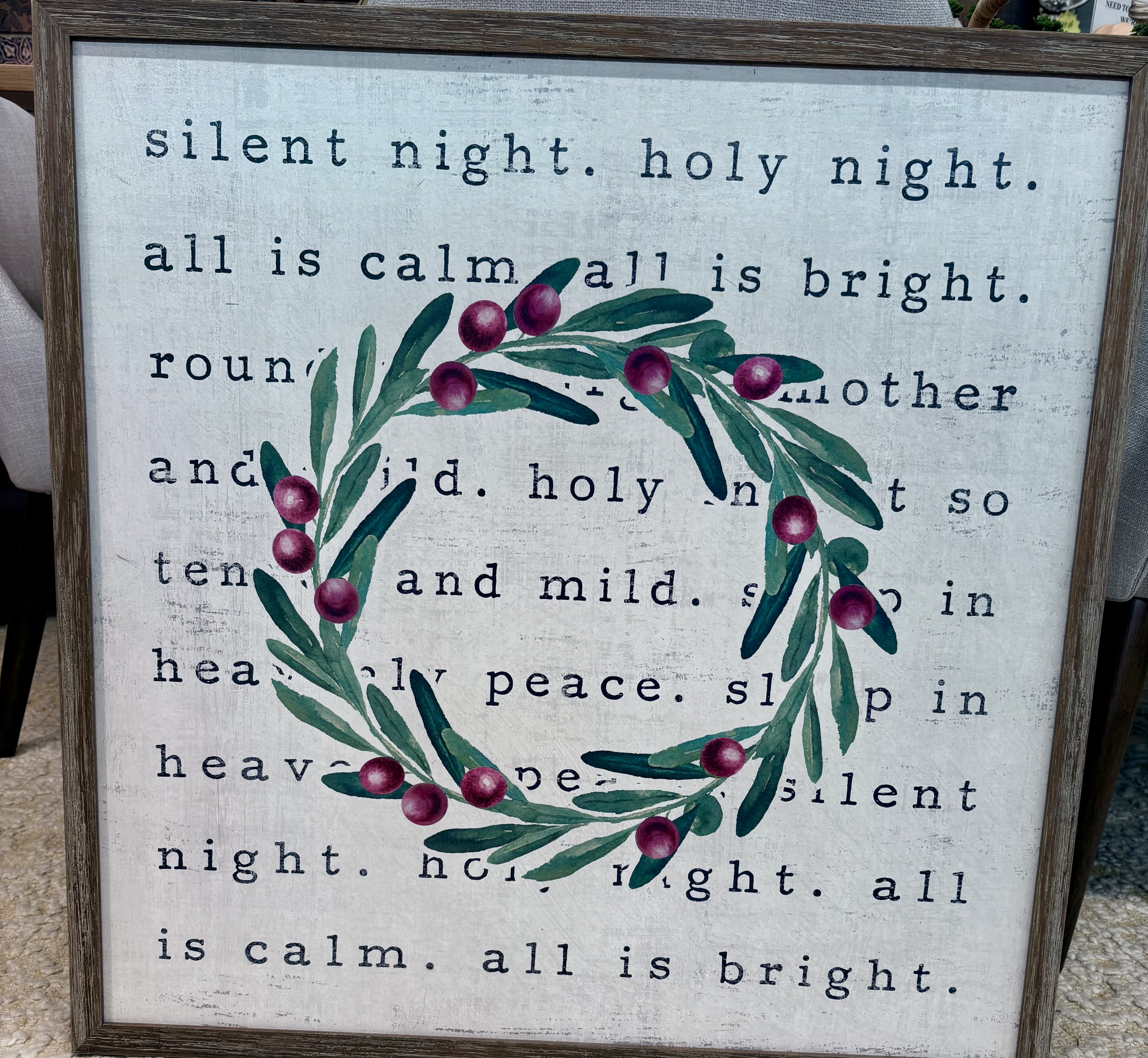 Decor XMas Seasonal 30x30H Xmas Wood Silent Night Script Plaque